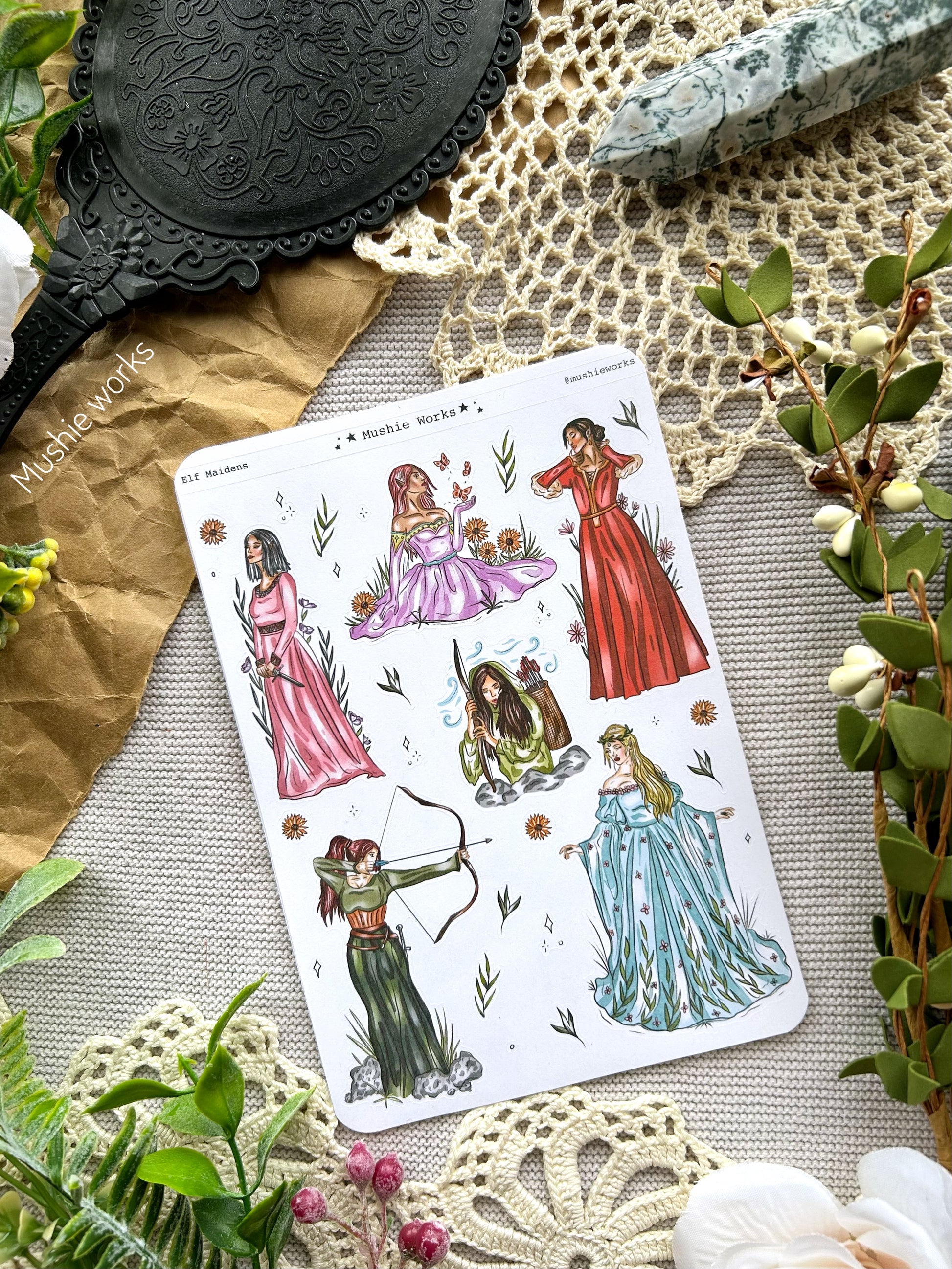 The sticker sheets are hand drawn and cut by myself and can not be distributed without my permission. The sheets is a 5x7.