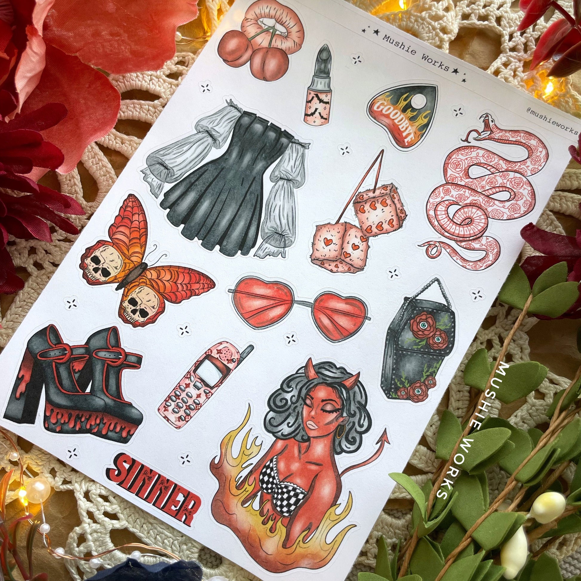 The sticker sheets are hand drawn and cut by myself and can not be distributed without my permission. The sheets is a 5x7.