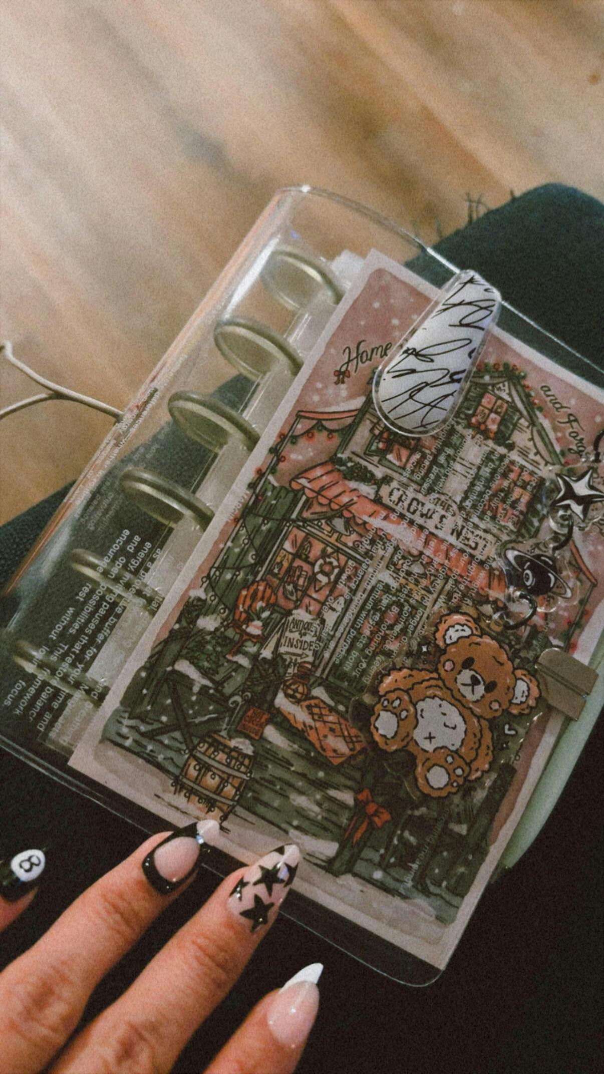 This keychain is from our jan 2025 forage box. It has black hardwear and it has three tiers. It is made out of acrylic and epoxy.