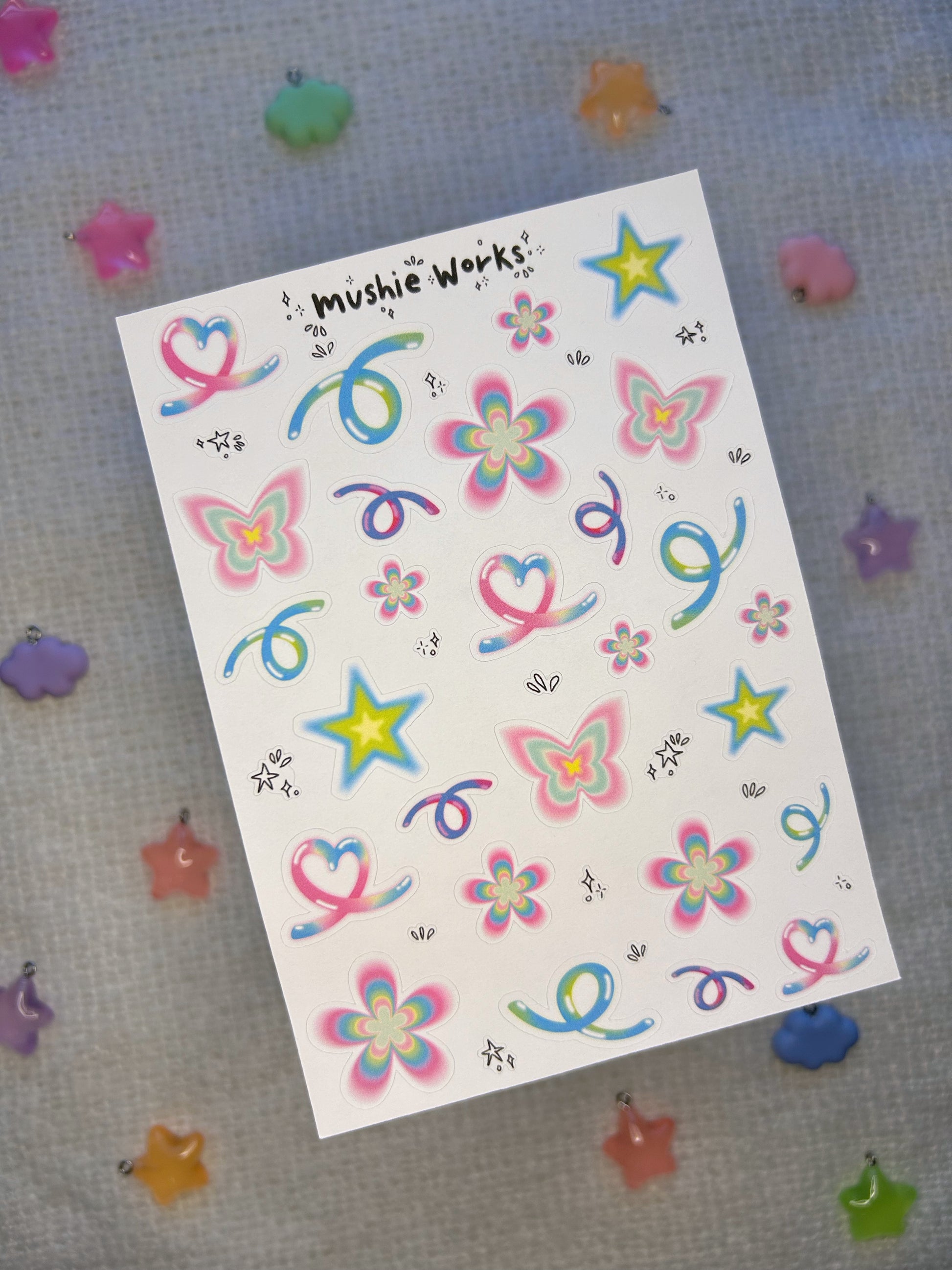 The sticker sheets are hand drawn and cut by myself and can not be distributed without my permission. The sheets is a 4.3x6